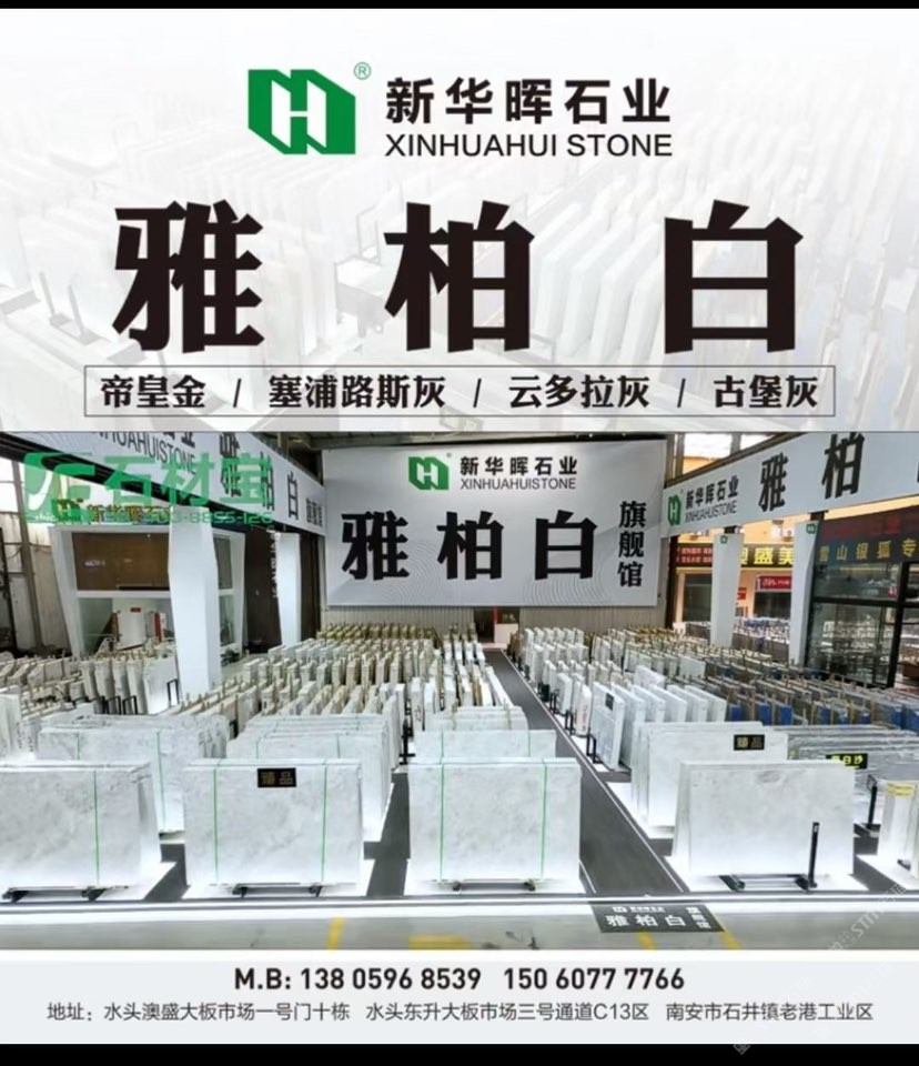 福建南安【賣場(chǎng)地址】水頭鎮(zhèn)澳盛大板市場(chǎng)2號(hào)門直走8棟新華暉白石空間