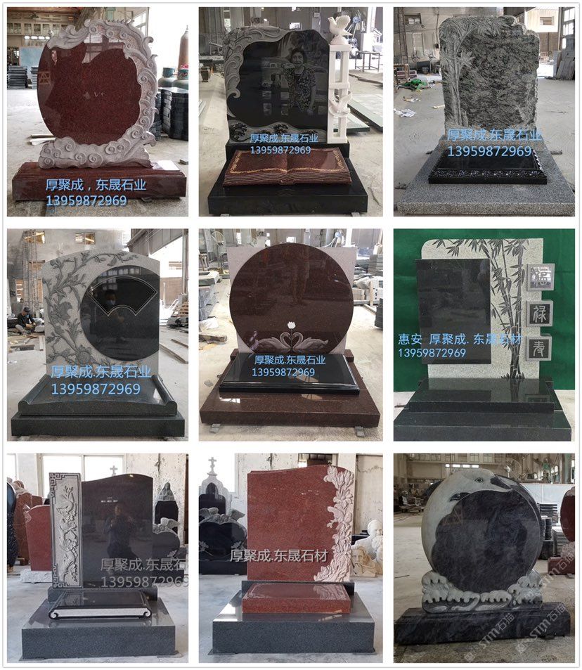 厚聚成石材惠安東晟工廠位于福建惠安蓮西工業(yè)區(qū),專業(yè)生產(chǎn)各種類型的墓碑。主要產(chǎn)品有中國墓碑,俄碑系列,美碑系列,歐碑系列。中國墓碑,分為傳統(tǒng)墓碑,藝術(shù)墓碑,豪華墓碑及墓飾系類,可以接受定制,歡迎來工廠實地考察,聯(lián)系電話:13959872969,何先生。