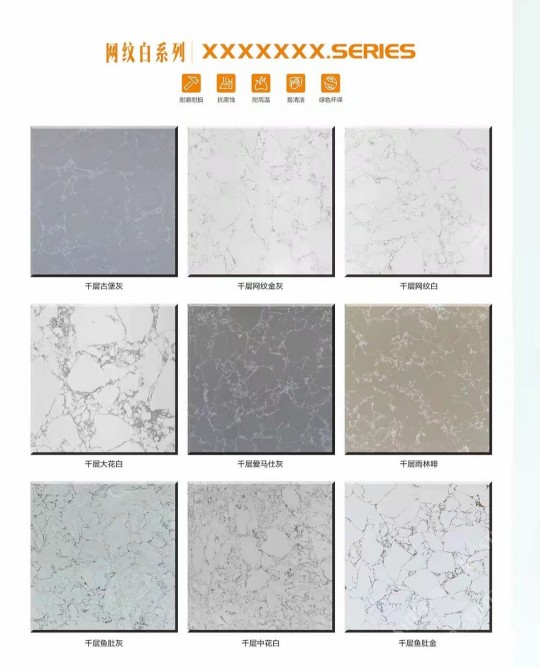 公司旗下?lián)碛兴^、石井、賀州三大現(xiàn)代化生產(chǎn)基地,引進(jìn)世界生產(chǎn)設(shè)備生產(chǎn)技術(shù)。產(chǎn)品的原材料是破碎天然大理石,原材料大理石含量高達(dá)90%以上,既保留了天然石純粹,,奢華之美;又具有綠色環(huán)保,色澤艷麗,顏色多樣,納米高光,耐磨耐壓,抗污環(huán)保等特點(diǎn)。
