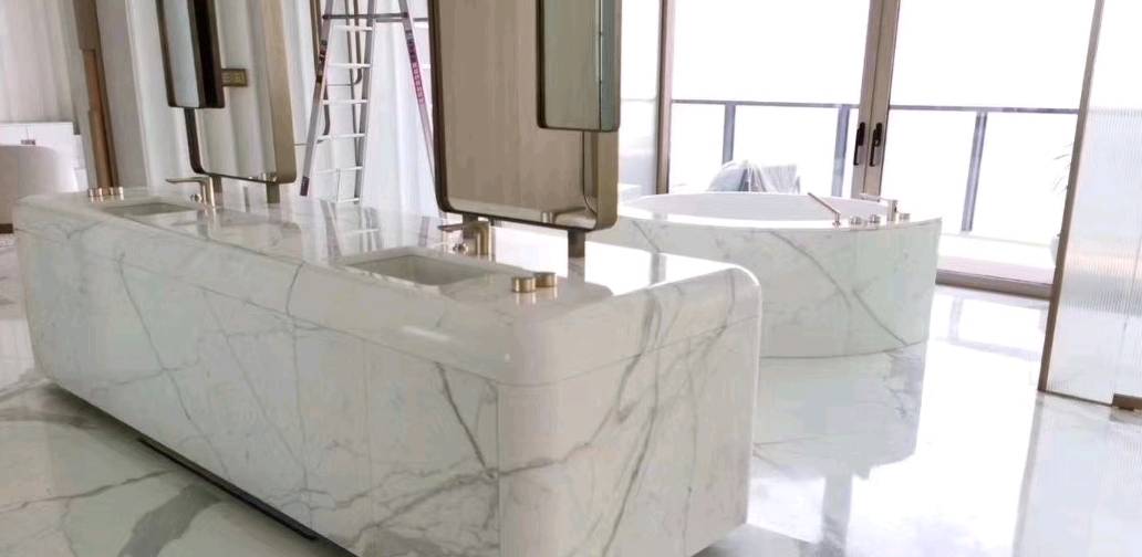 意大利雪花白卡拉拉白,背景,大廳,吧臺(tái),墻面均有立體感!