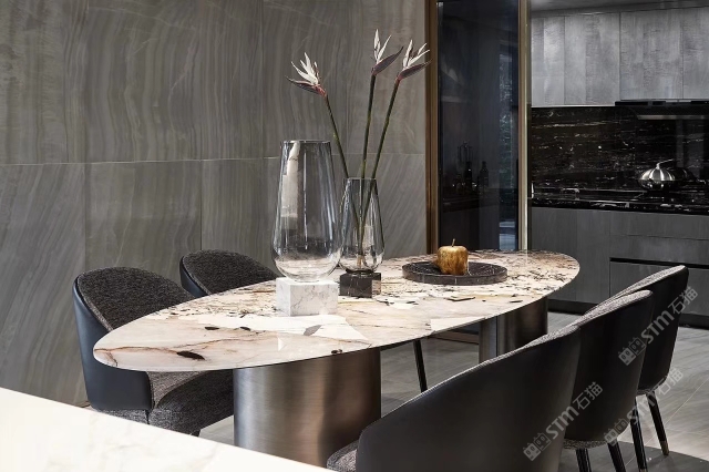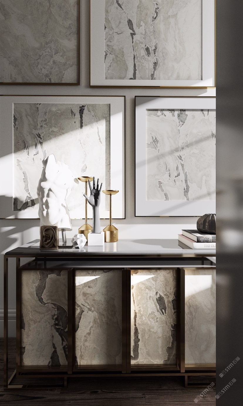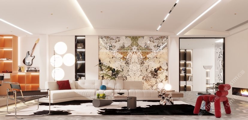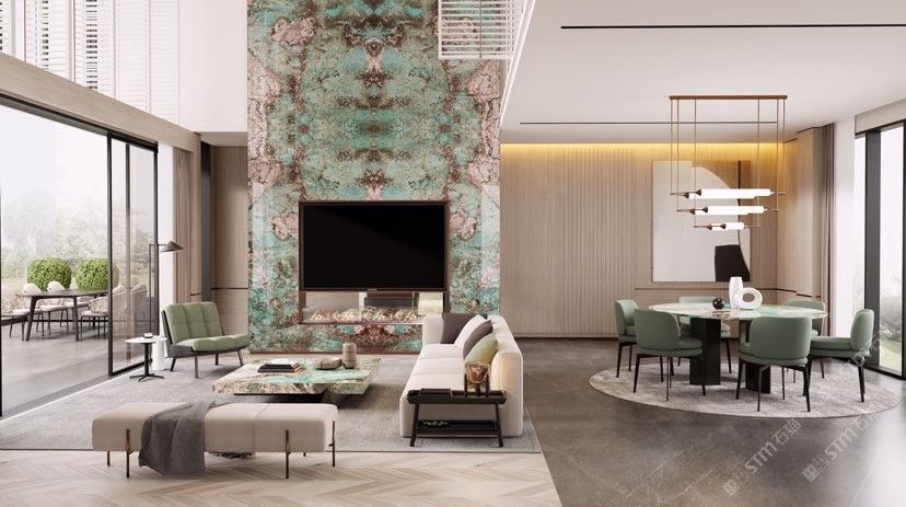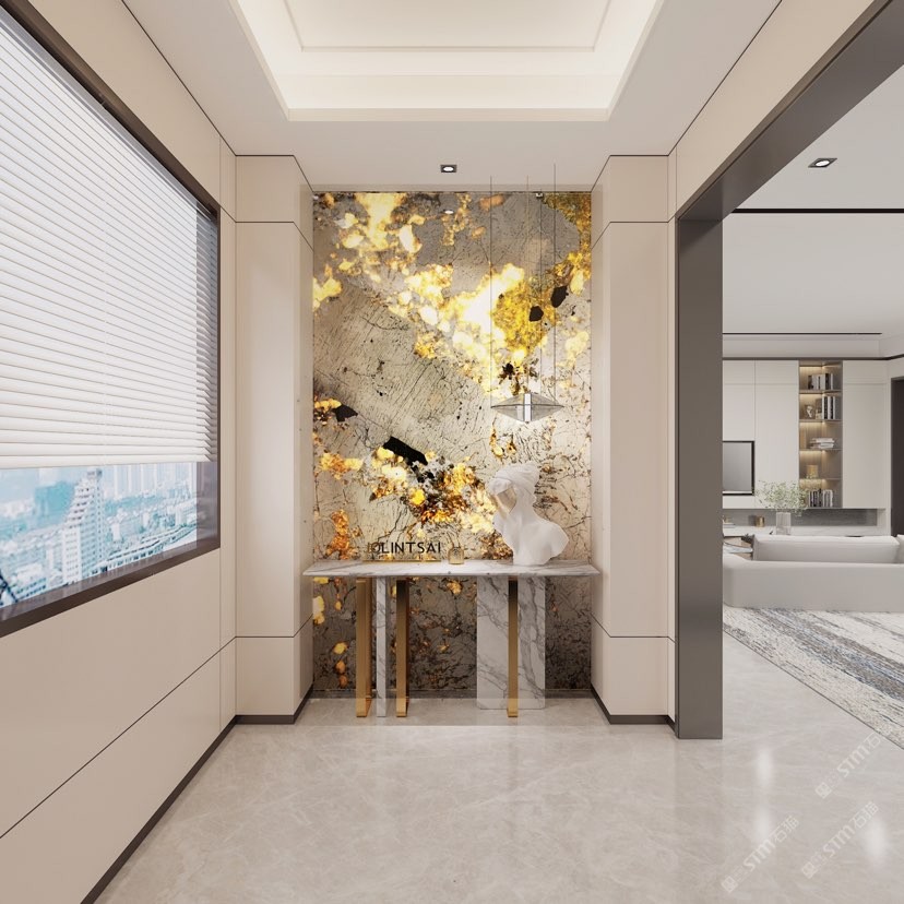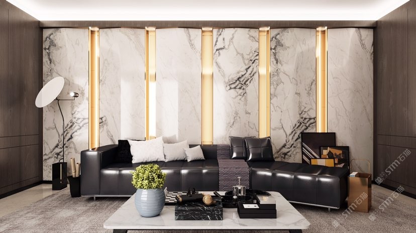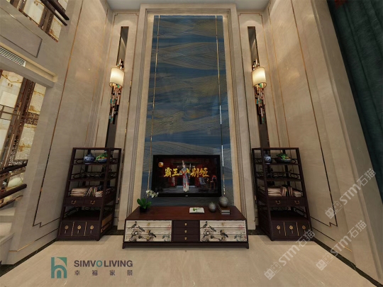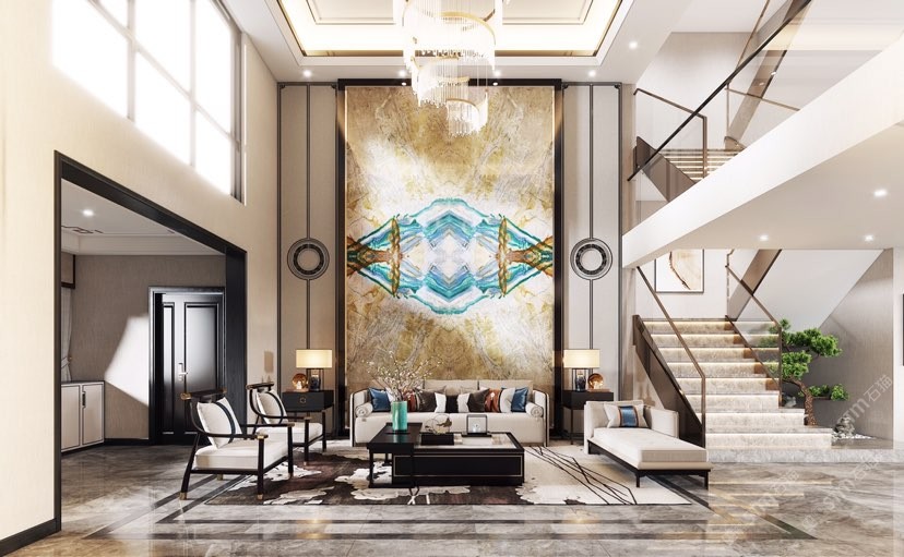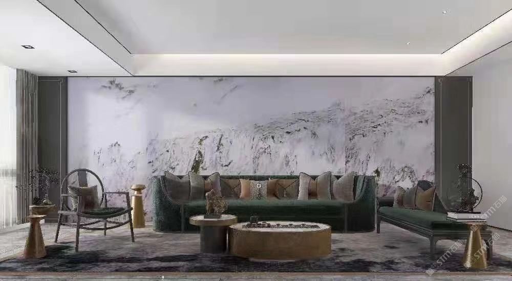 幸福家景定位于高端家裝精品石材批發(fā)商,建立了天然玉石、天然石英石、山水畫等三大板塊為主的天然石材背景墻體系!