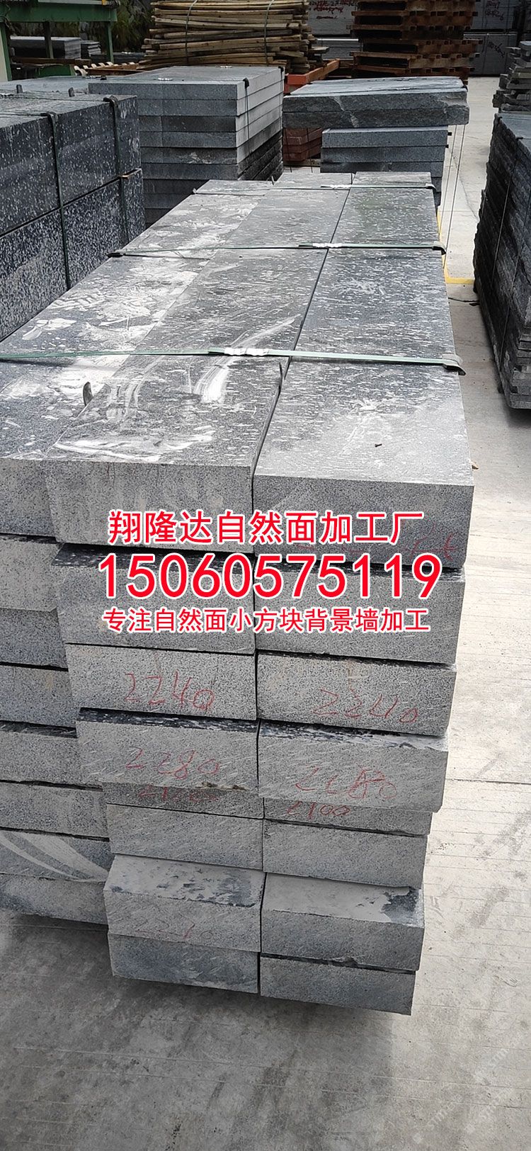 長(zhǎng)泰縣翔隆達(dá)自然面加工廠林總15060575119(微信同號(hào))專業(yè)從事自然面、小方塊、蘑菇石、墓碑石、背景墻等石材,實(shí)力工廠,低價(jià)批發(fā);主營(yíng):自然面小方塊、自然面蘑菇石、自然面背景墻、自然面馬蹄石、自然面地鋪石材等;石材品種有:芝麻黑G654、老礦芝麻黑G654、新礦G654芝麻黑石材、芝麻灰G655石材、芝麻白G623花崗巖、黃銹石G682石材、蝦紅G681石材、G688深灰麻、G641喬治亞灰、新礦喬治亞灰、黑色麻石等。歡迎你來(lái)電溝通洽談業(yè)務(wù)!