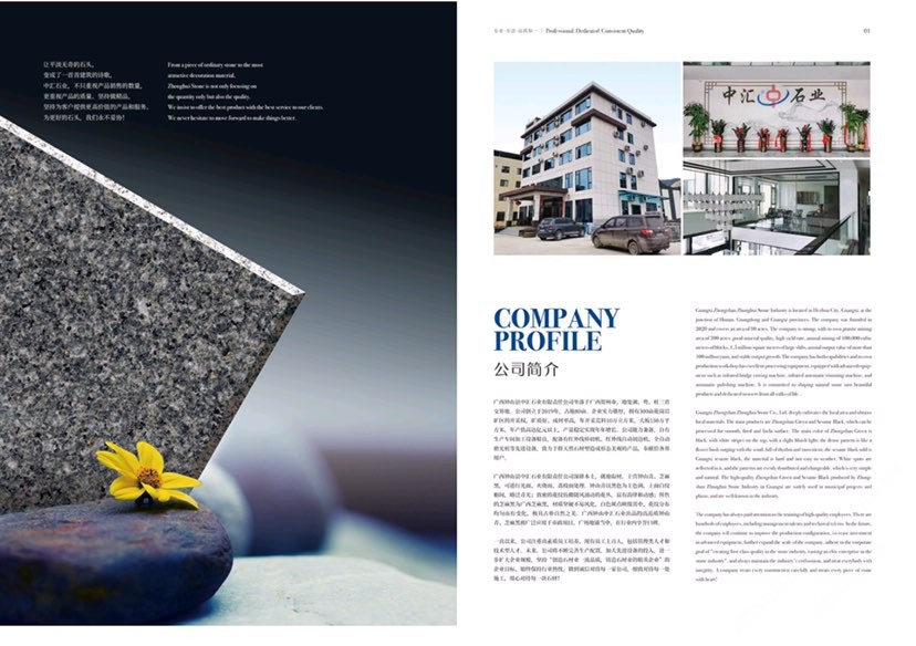 鐘山縣中匯石業(yè)有限責任公司坐落于廣西壯族自治區(qū)賀州市,地處湘、粵、桂三省交界地。公司創(chuàng)立于2019年,占地面積80余畝。企業(yè)實力雄厚,擁有300畝花崗巖礦區(qū)的開采權(quán),礦質(zhì)好、成材率高,年開采荒料10萬立方米,大板150萬平方米,年產(chǎn)值高達億元,產(chǎn)量穩(wěn)定實現(xiàn)連年增長。公司才能兼?zhèn)?,自有生產(chǎn)車間,加工設備精良。配備有紅外線橋切機、紅外線自動切邊機、全自動磨光機、定厚機、仿形機、雕刻機等先進設備,致力于將天然石材塑造成形態(tài)美觀的產(chǎn)品,奉獻給社會各界用戶。