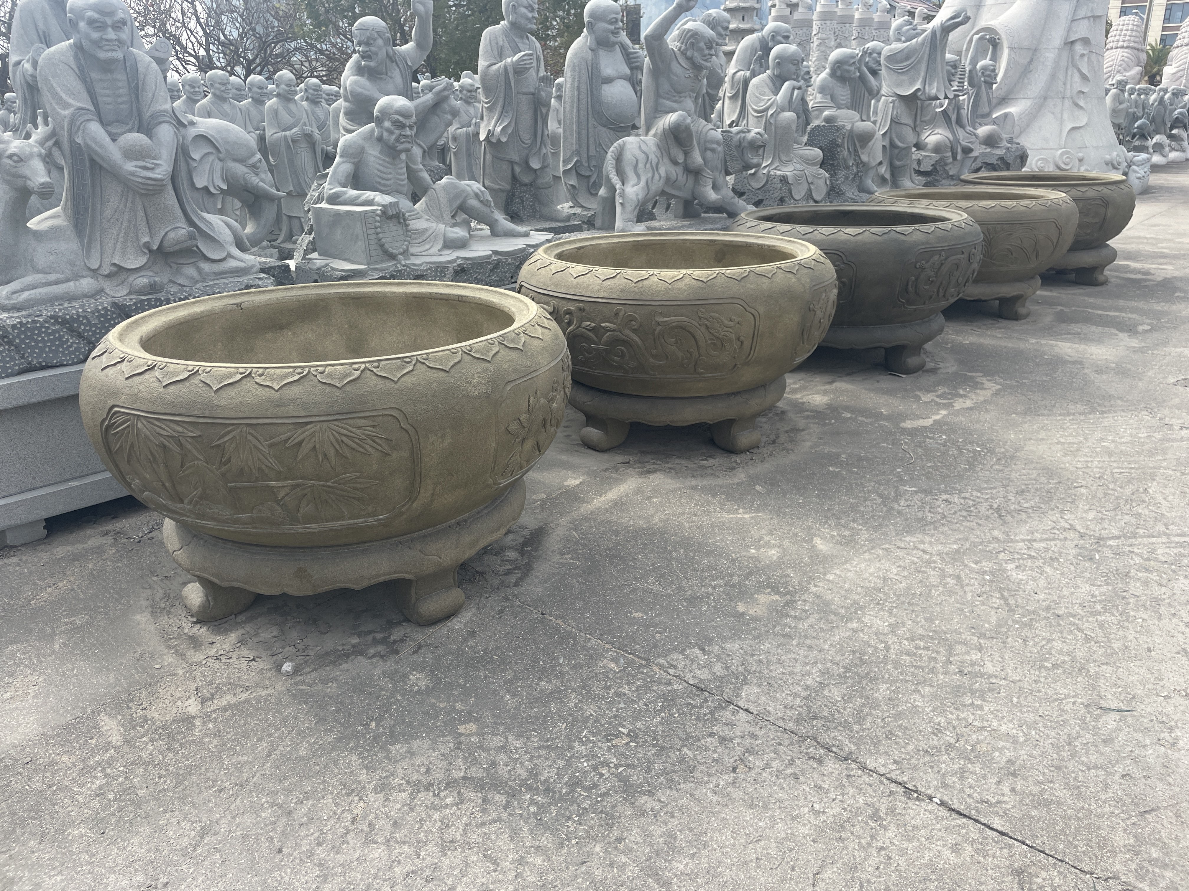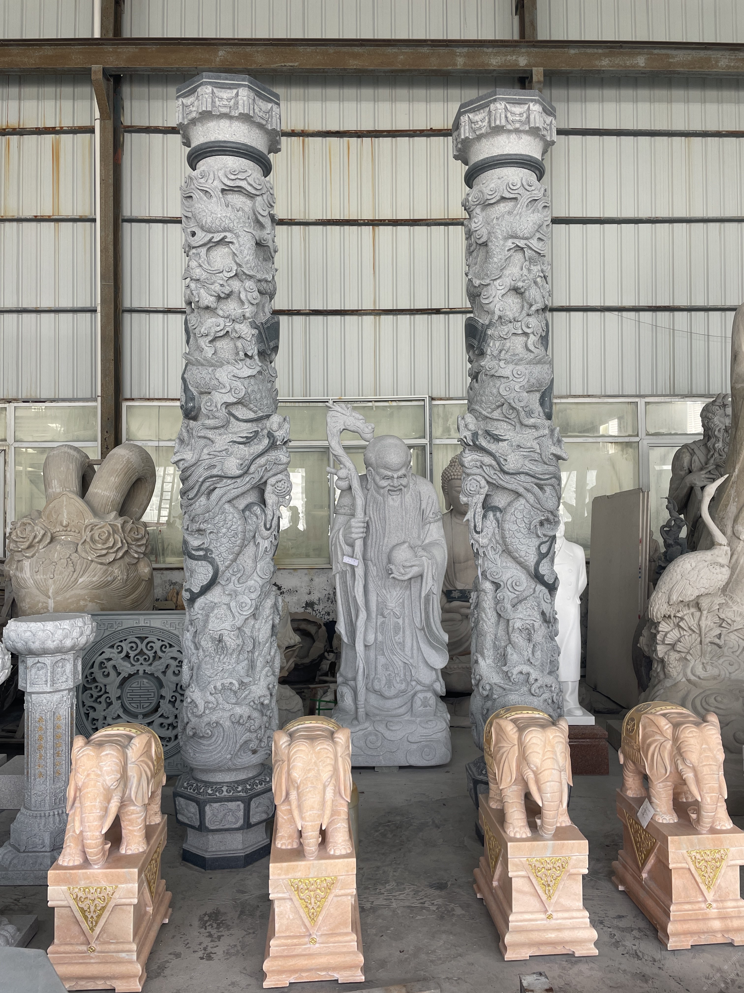? ? ? 生產(chǎn)加工產(chǎn)品主要包括大型雕塑、古今名人雕塑、園林配套雕塑、寺廟雕刻、動物雕塑、奇石(鐘乳石)、宗教大佛雕塑、龍柱、文化柱、石塔、經(jīng)塔、漏窗、山門牌樓、噴泉、庭院燈籠等上千個石雕品種。石雕技藝?yán)w巧、精細(xì),具有賞心悅目的藝術(shù)效果。近年來公司致力于城市景觀工程配套服務(wù),為市政廣場、城市綠化廣場、公園、住宅小區(qū)等場所提供大量具有相當(dāng)藝術(shù)含量的雕塑作品,設(shè)計、生產(chǎn)、安裝一站式服務(wù)。