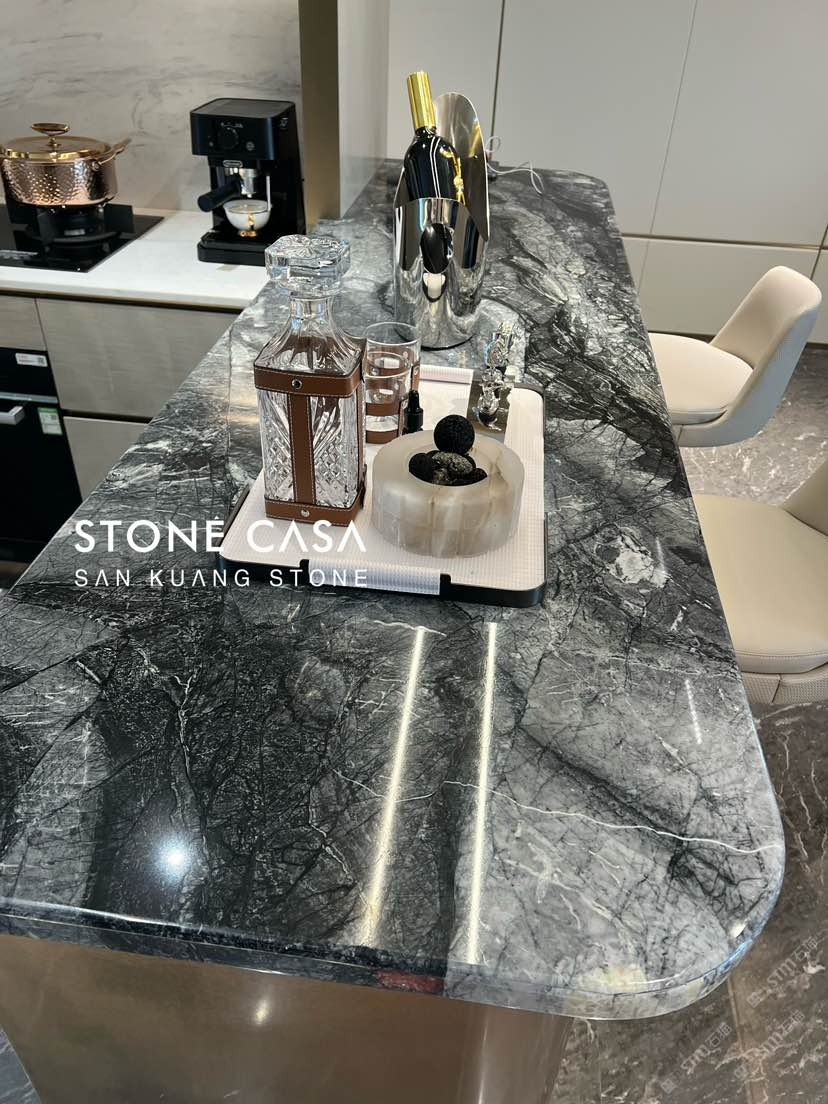 發(fā)布信息: 深邃的色彩 搭配古銅色的金屬飾板 讓整個(gè)西式島臺更顯