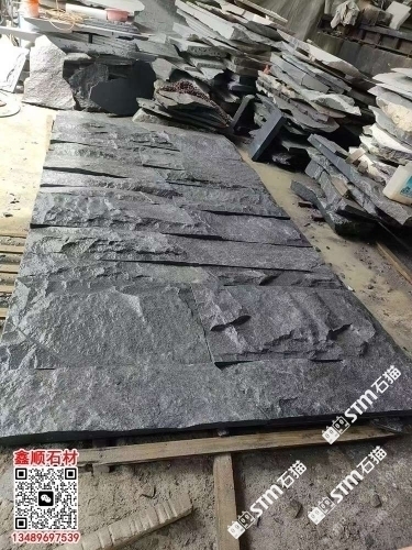 芝麻黑自然面背景墻劈裂石文化石壘墻石老條石仿古石材
