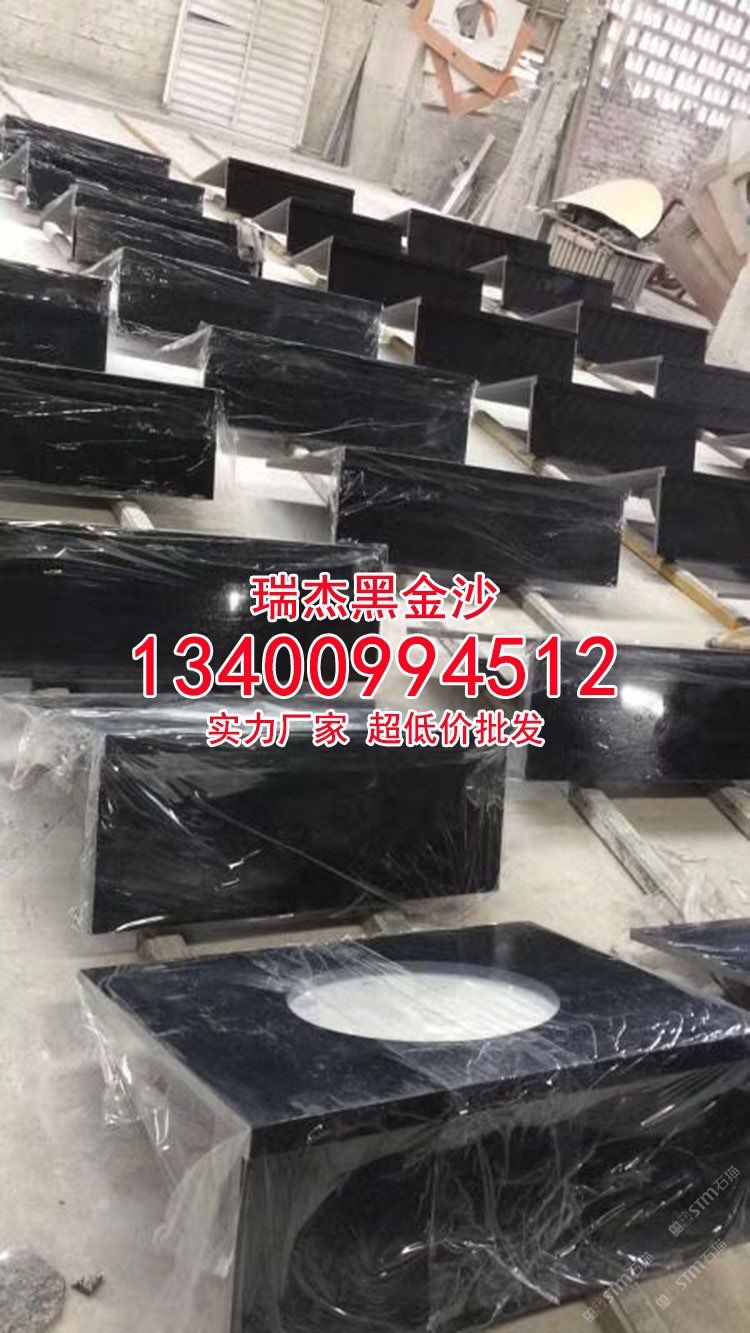 國產(chǎn)黑金沙石材天然花崗巖大理石洗手臺面板廠家直銷