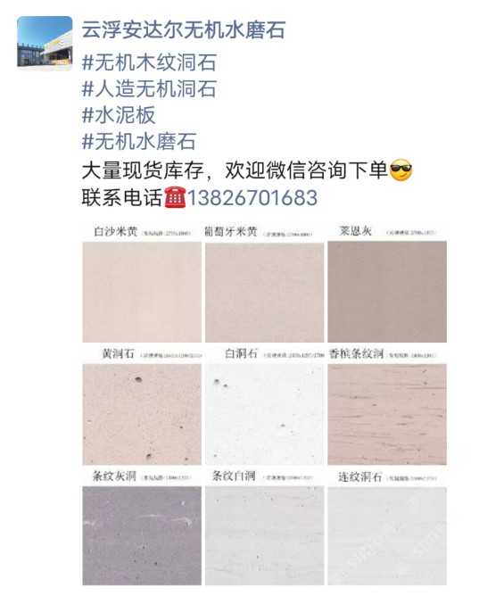 發(fā)布信息: #無(wú)機(jī)木紋洞石 #人造無(wú)機(jī)洞石 #水泥板 #無(wú)機(jī)水磨石 大量現(xiàn)貨庫(kù)存,歡迎微信咨詢下單[得意] 聯(lián)系電話??13826701683
