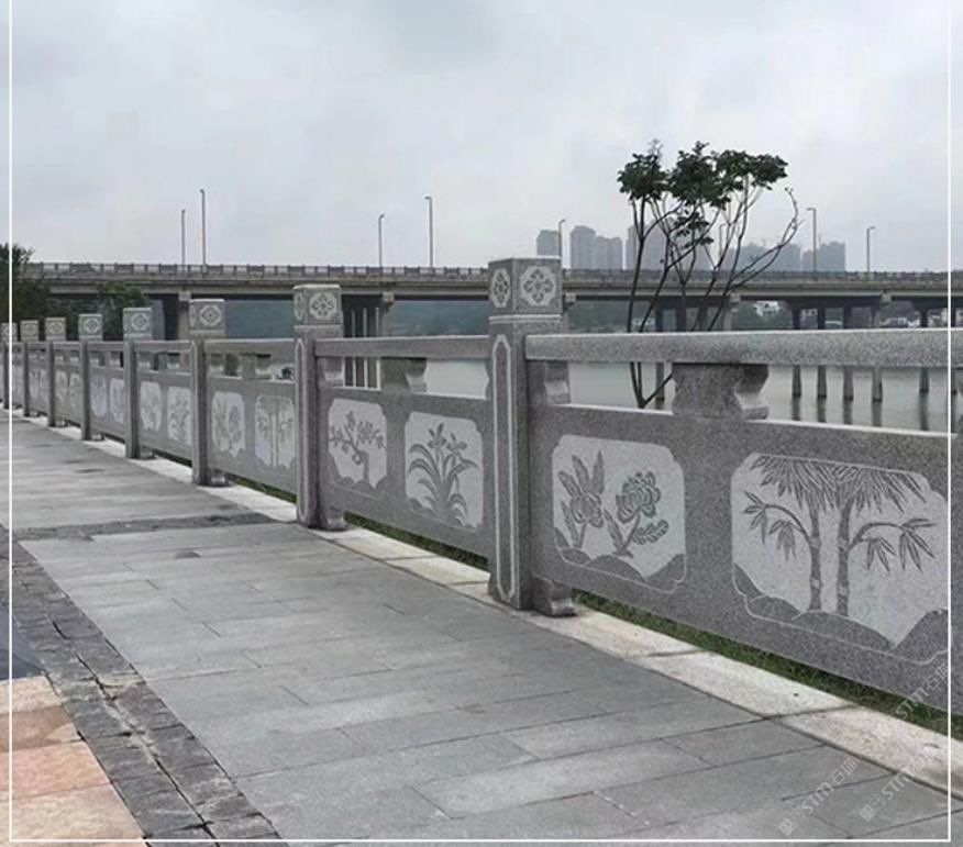 河道圍欄,欄桿 石頭 護欄 河欄。