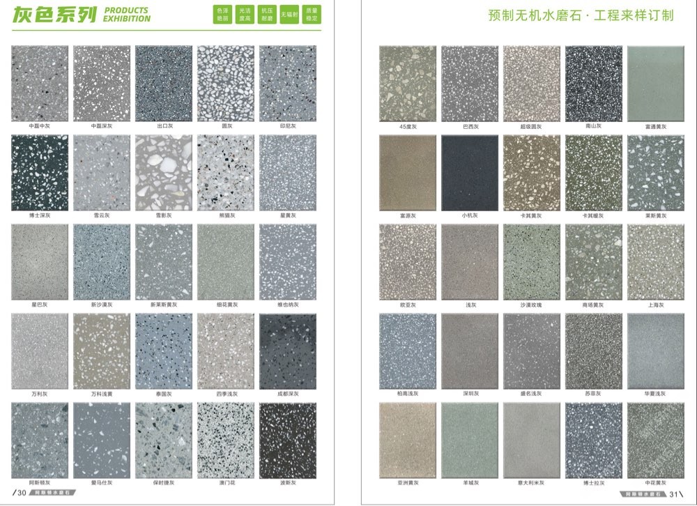 發(fā)布信息: #阿斯頓水磨石 新版畫冊預告,喜歡嗎 純無機水磨石,專業(yè),品質(zhì)保證! ① 無樹脂、天然花色 ② 可定制任意款式(設(shè)計/尺寸) ③ 來板仿樣2~3天完成 ④ 生產(chǎn)、銷售、加工一體化