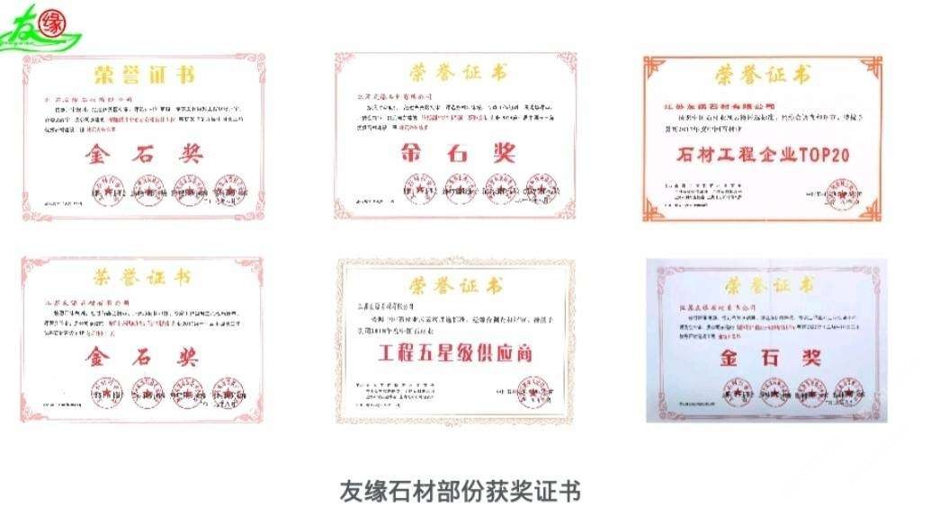 發(fā)布信息: 友緣石材成立于1998年至今。是一家集石材礦山開采、加工批發(fā)、工程設計、安裝施工、售后服務為一體的石材企業(yè),承接各類石材裝飾工程及加工各種異型工藝石材。 友緣石材精品加工中心、精品倉儲中心位于江蘇省南通市洋口港石材產(chǎn)業(yè)園區(qū),占地面積約28000平方米,生產(chǎn)中心集石材荒料加工,精品大板拋光,工程異形石材加工等一體化生產(chǎn)功能,具有國內(nèi)外先進加工設備,如鉆石切割機、單邊鋸切割機、繩鋸切割機、全自動板材拋光機、真空烘干流水線設備、紅外線切割機、全自動化線條機、磨邊機、水刀切割機、仿形機等等,具備先進的加工能力和豐富的施工經(jīng)驗。