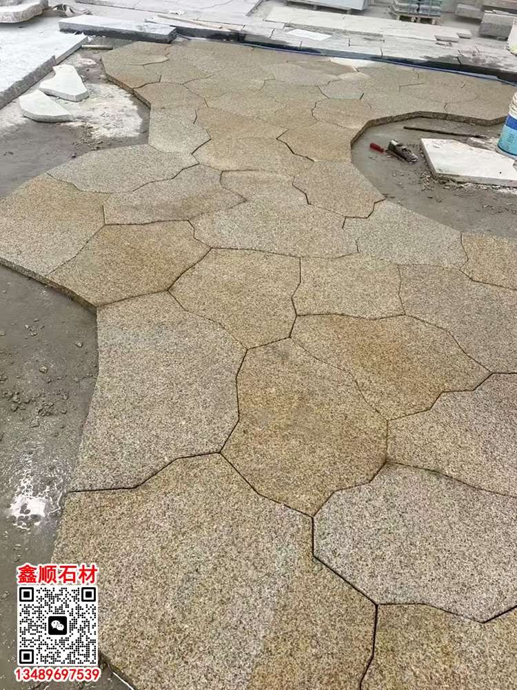 黃銹石地圖拼石材不規(guī)則自然碎地鋪裂紋毛面拼石冰裂紋
