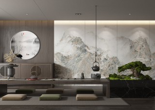 唐馳巖板定制 新中式背景墻裝修
