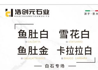 浩創(chuàng)元石業(yè)主營產(chǎn)品:魚肚白,魚肚白1,卡拉拉白,卡拉拉白1,卡拉拉白(意大利礦),魚肚金,魚肚金2,雪花白3,雪花白2,雪花白5,雪花白6,雪花白4,小雪花白(細紋雪花白),魚肚金(意大利正礦)企業(yè)地址:福建泉州南安市水頭鎮(zhèn)