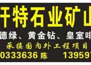 河北正宇石材有限公司主營產(chǎn)品:黃金鉆0,黃金鉆,黃金鉆1,黃金鉆3,金典灰麻,承德綠2,承德綠3,承德綠1,承德綠,承德綠小花,承德綠大花,藍豹,小藍豹,藍豹1,藍豹2,易縣黑,紫荊黑,藍寶石,香檳翠,巴蘭珠企業(yè)地址:河北承德承德縣石材工業(yè)園區(qū)