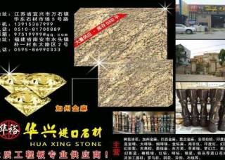華裕(華興)石材主營產(chǎn)品:加州金麻,加州金麻(黑底),紫點金麻,紫點金麻1,淺紫點,美國白麻,美國灰麻,金山麻,世貿(mào)白,芭蕉黃1,安哥拉黑(黑水晶),安哥拉棕,安哥拉棕3,藍(lán)珍珠(11號礦),銀珠,綠星1,巴西金麻,海藍(lán)寶,印度蘭1,烏克蘭幻影藍(lán)企業(yè)地址:福建南安水頭鎮(zhèn)樸一村東大路區(qū)2號