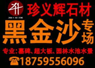泉州珍義輝石材有限公司主營產(chǎn)品:黑金沙,黑金沙(中花),黑金沙(反切大板面),黑金沙(中細花),黑金沙(仿石磚),國產(chǎn)黑金沙,安哥拉黑,黑水晶,墓碑半成品,盲人石/導盲石,景觀石(刻字石),水景企業(yè)地址:福建南安水頭鎮(zhèn)閩南建材市場珍義輝石材